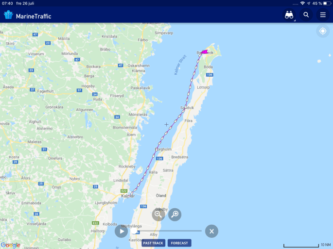 Igår lämnade vi Kalmar där Andrea och Jonatan mönstrade på kvällen innan. Bunkrade diesel innan avfärd och satte kurs mot Byxelkrok (45 NM). Hamnkaptenen här bad oss att komma skapligt tidigt för att få bra plats, så det blev till att gå i fart. Tittade som hastigast in i Sandvik där vi sa hej till Cessa och Magna. Också en fin liten hamn som vi får besöka ett annat år.